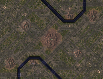 Original 1v1 map by DESolatroTrooper september 2024. Abandoned and overgrown city, Yellow Zone, a lot of trees and bushes. Fast 1st and 2nd fields, Growing 3rd field, 4 bridges to blue field, some bridges near players spawn ruined at game start